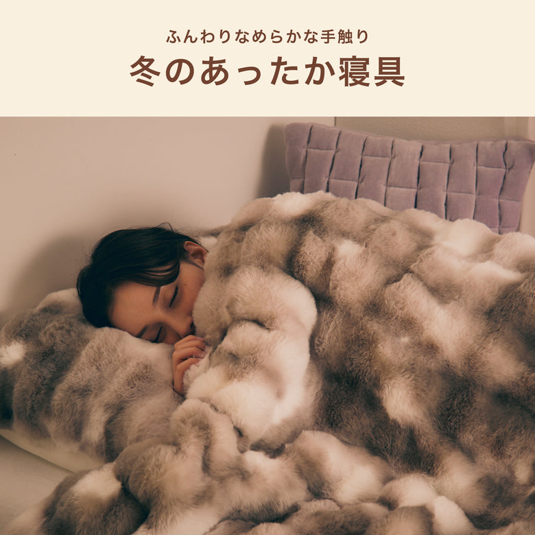 使わない時はカバーに収納してクッションとして使える2WAYスロー。両面ファー仕様のカバーは、ラメ糸をミックスした上品な輝きでお部屋を華やかに彩ります。