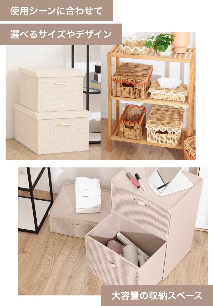 暮らしやシーンに合わせて選べるサイズやデザインで、お部屋をすっきり美しく整えます。