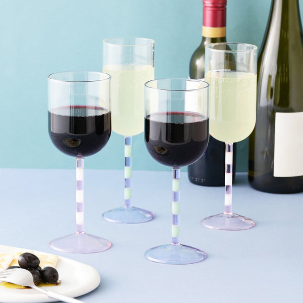 ストライプステム ワイングラス ピンク