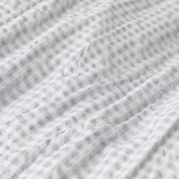 ふわろ 夏でもひんやりもちもち 肌掛けふとん フリルチェック ダブル ホワイト×グレー