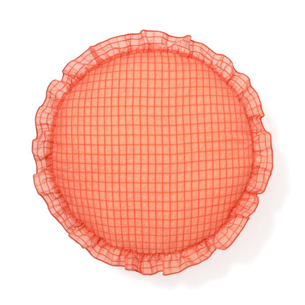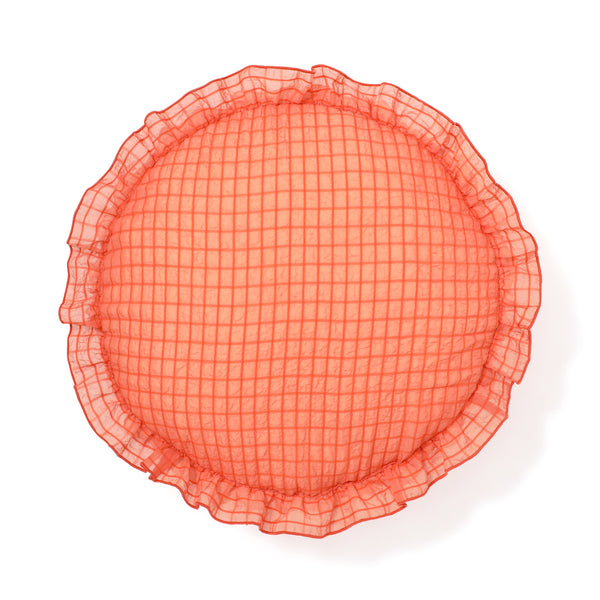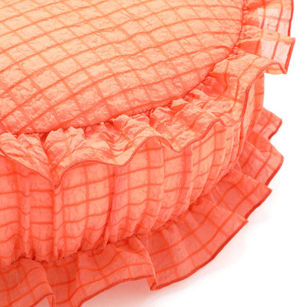 シアーチェック フリル クッション φ420 オレンジ
