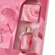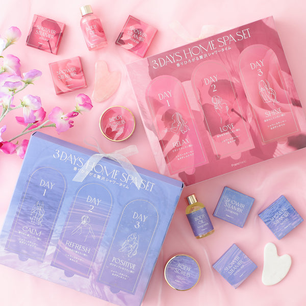 【ボディスクラブ】スクロース、グリセリン、シリカ、水、香料、アーモンド油、オリーブ果実油、ステアリン酸グリセリル、テウチグルミ殻粒、赤227、青1