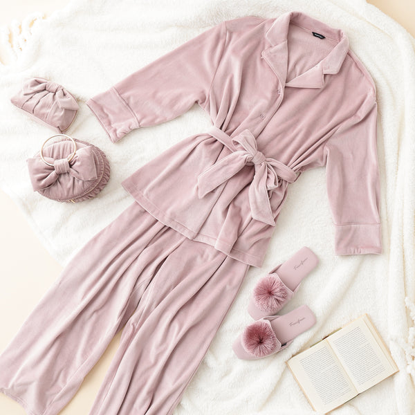 ヒアルロン酸加工 ストレッチベロアパジャマ ピンク