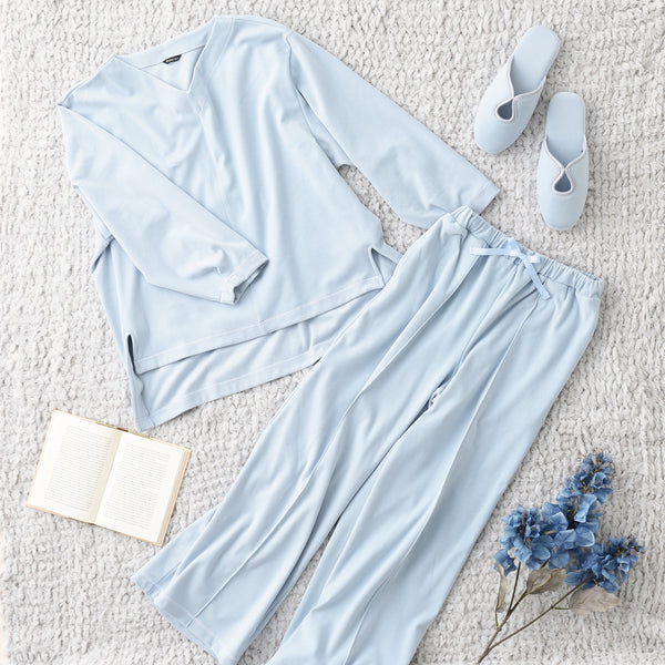吸放湿加工 ストレッチスウェット ルームウェア ブルー