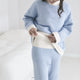 ウエストウォーマー付き もちもちニットパジャマ ライトブルー