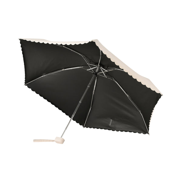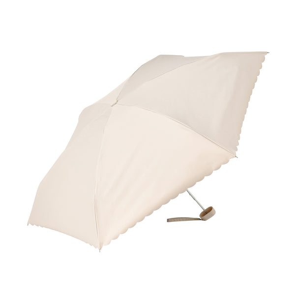 遮光 コンパクト スカラップ 折りたたみ傘 47cm ライトベージュ(晴雨兼用)