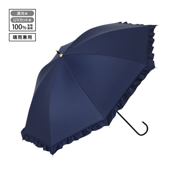 遮光 クラシックフリル 長傘 50cm ネイビー(晴雨兼用)