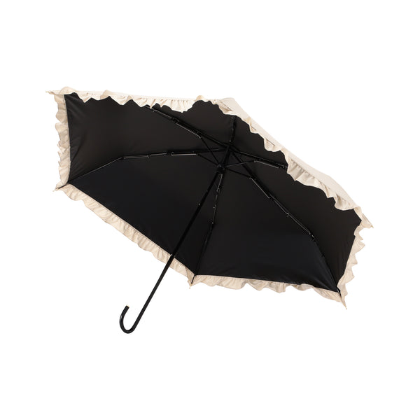 遮光 クラシックフリル 折りたたみ傘 50cm ベージュ(晴雨兼用)