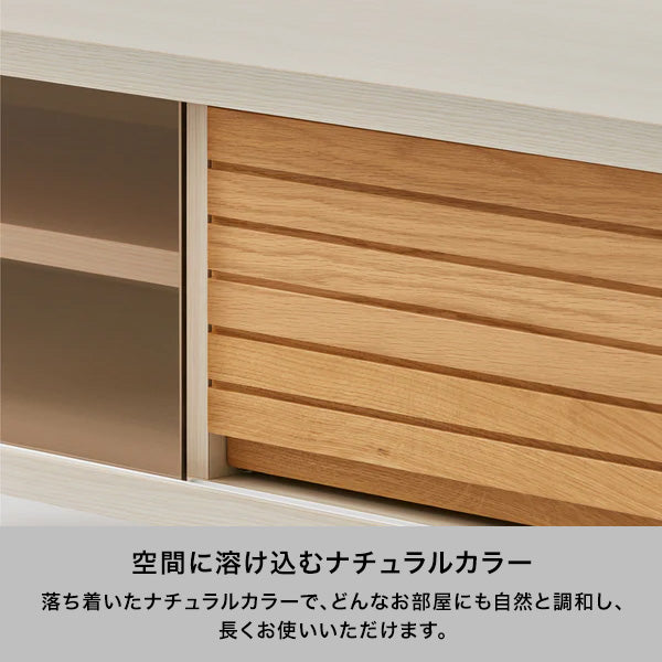素材 本体:強化紙化粧板、引き出し前板・取っ手:オーク材ウレタン樹脂塗装仕上げ、引き戸:強化ガラス カラー NT 品番 1108060044008 -